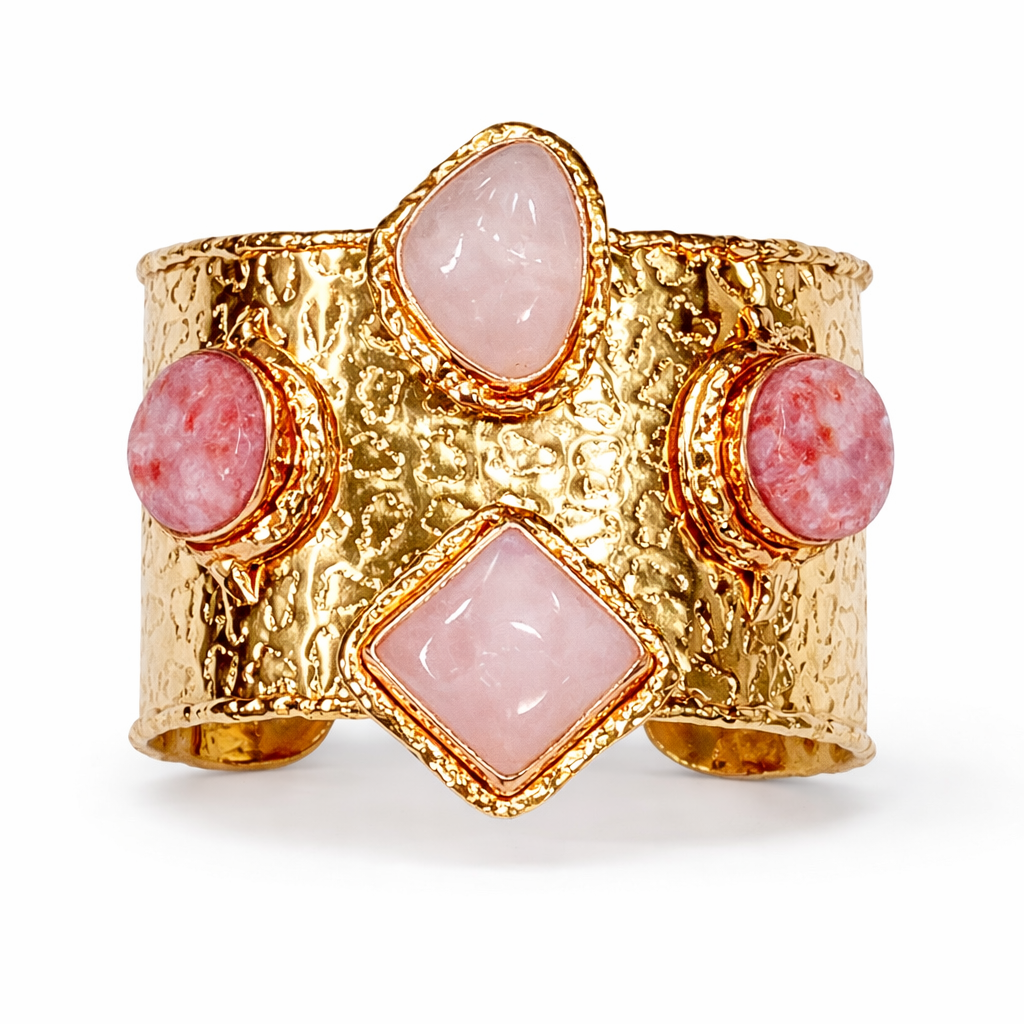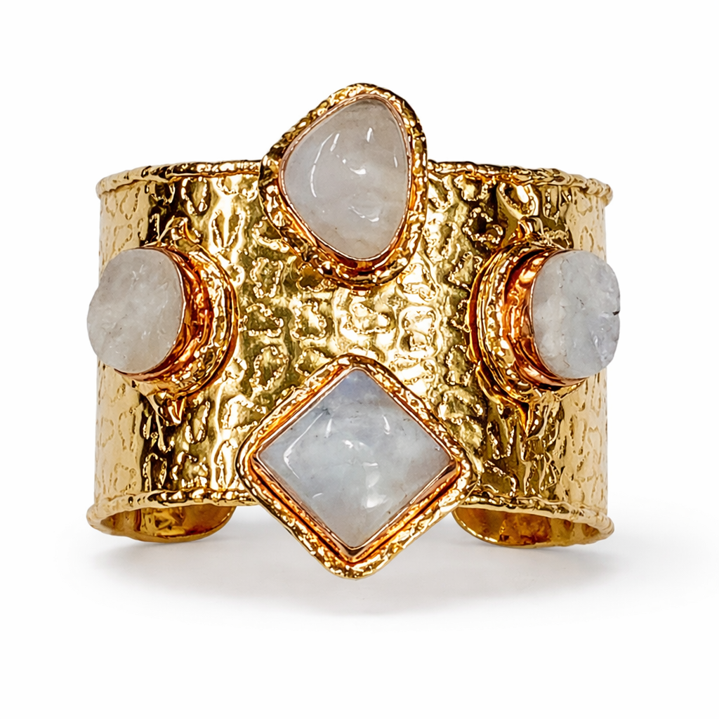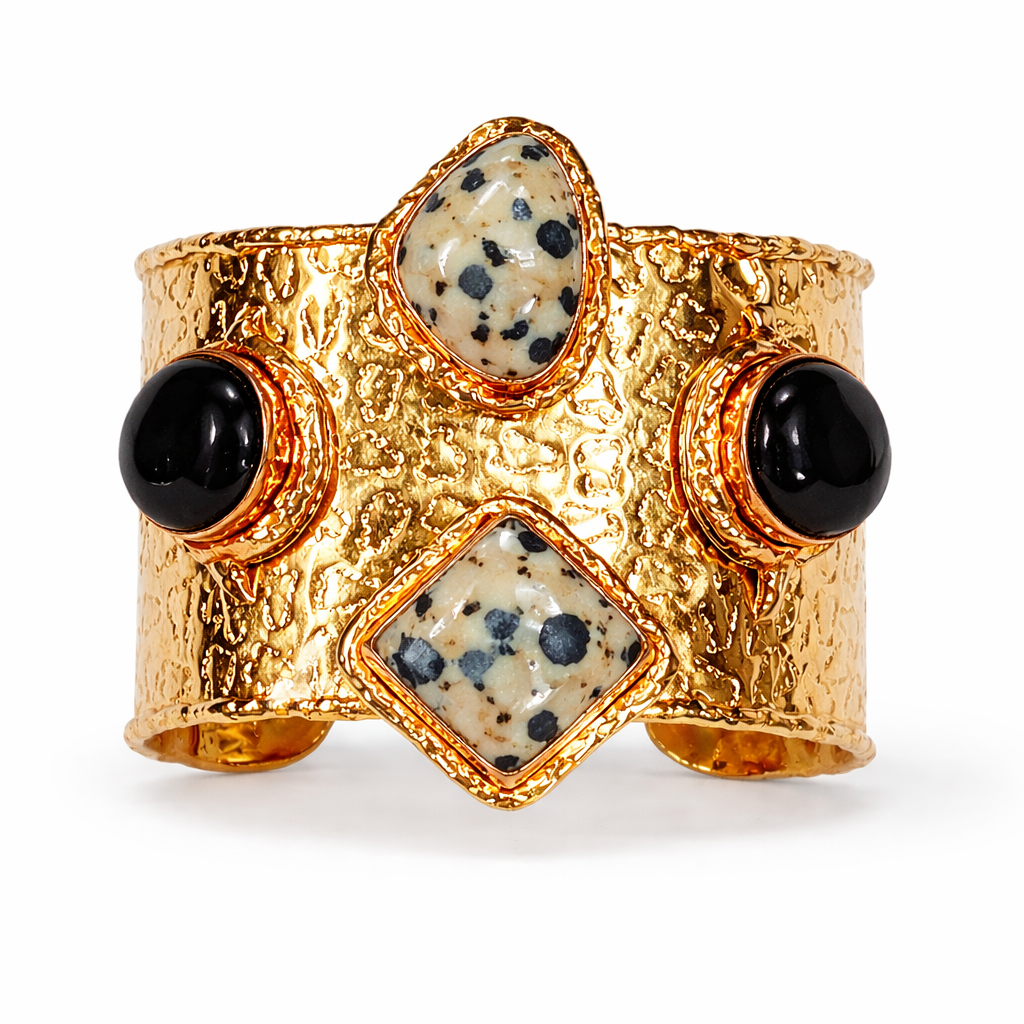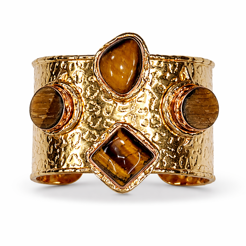 Carved Echo Cuff captures the beauty of raw textures shaped by time. Sculpted surfaces and bold geometric forms create a piece that feels both ancient and modern—an echo of the earth, reimagined in gold.