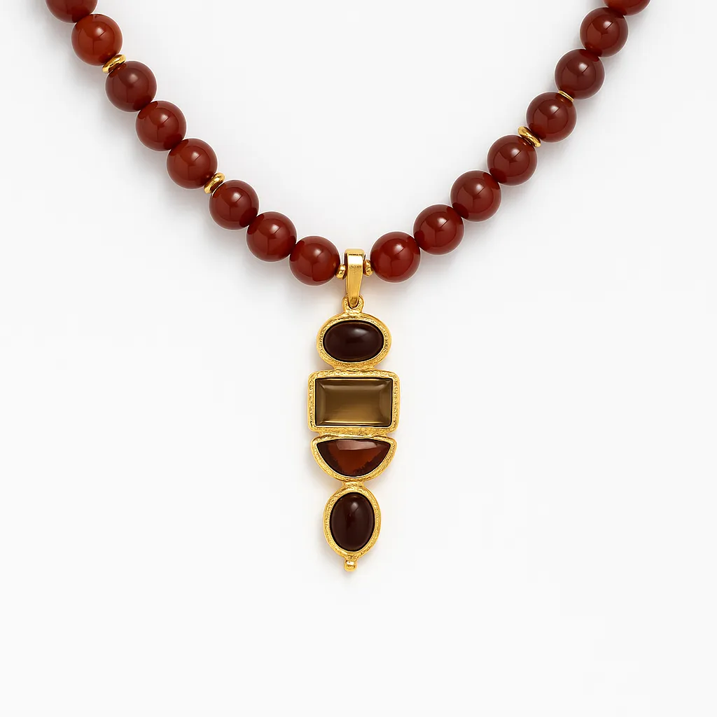 Bathed in golden warmth and desert tones, the Desert Mirage Pendant embodies the illusionary beauty of shifting dunes and sunlit horizons. The mystique of nature’s palette, grounded in textured gold that mirrors the glow of desert twilight.