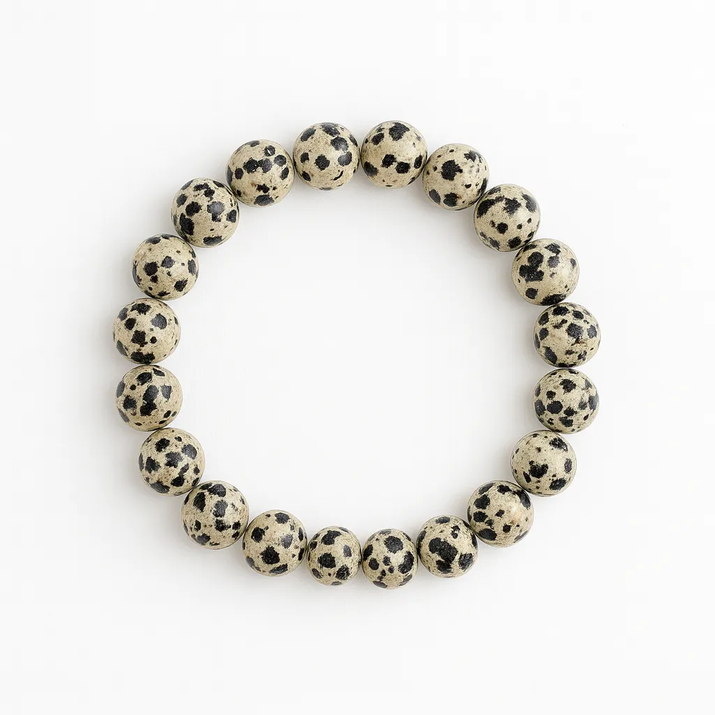 Freckled Whisper is inspired by the joyful, grounding energy of Dalmatian jasper — a stone known for encouraging playfulness, protection, and emotional balance. Its freckled patterns reflect lightness of spirit, reminding the wearer to move through life with optimism and ease.