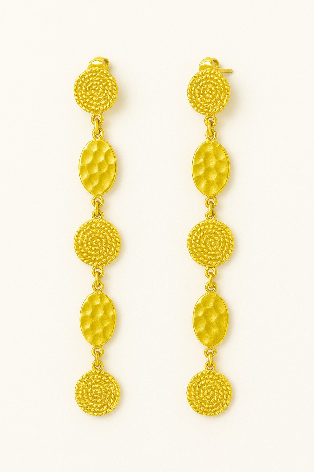 Defined by contrast and repetition, the Hammer & Coil Earrings explore the dialogue between raw texture and structured form.