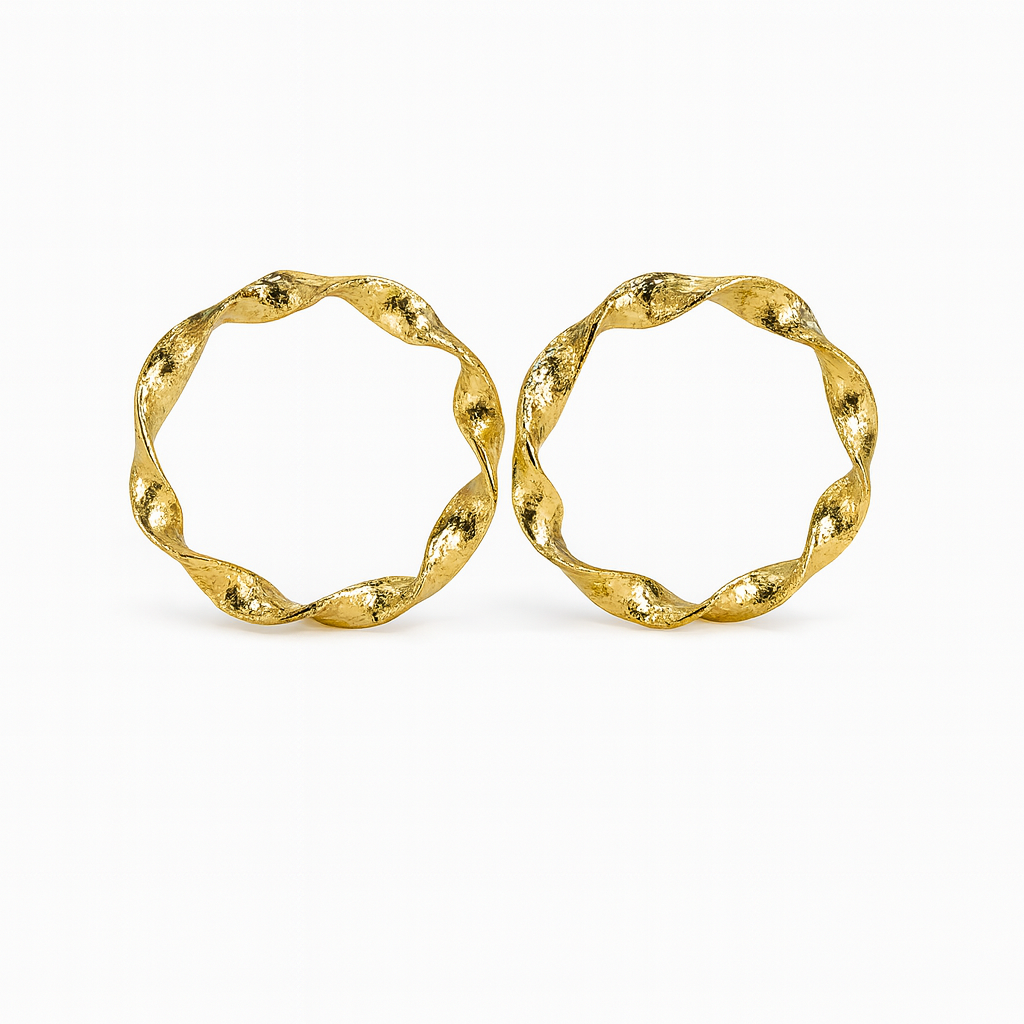 The Twisted Curl Loop Earrings redefine the classic hoop through movement and imperfection.